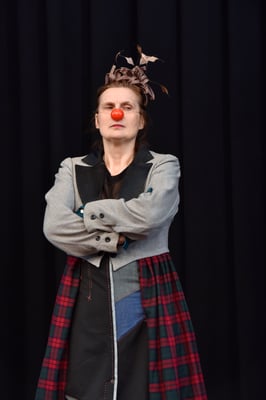Beate spielt mit Wäsche-klammern (Adriana Frei und Andrea Wolfisberg)